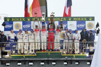Dr. Wolfgang Ullrich (Head of Audi Motorsport): "I think this was the most difficult race we ever did at Le Mans – even more difficult than the rain-soaked race in 2001. This was topped this time due to the strong competition, the many incidents and the rain in the final hours. We managed to get one car to the finish in these difficult circumstances winning against strong competitors. This was a fantastic achievement of the whole team. We wanted to prove that we have the best technology with Audi TDI Power, the best drivers and the best teams. We achieved that. This triumph shows one more time the meaning of ‘Vorsprung durch Technik’.”